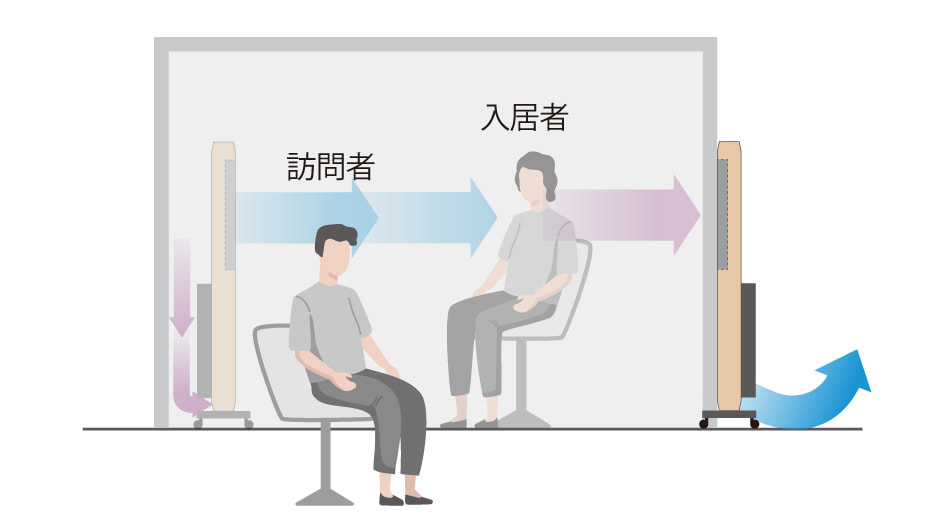 施設への訪問者と入居者を陰圧ブースで隔てることで、面会時の飛沫拡散を防止します。
