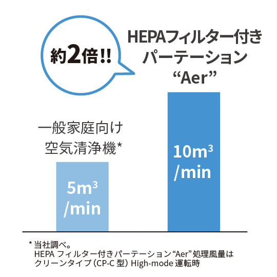| HEPAフィルター付きパーテーション “Aer”(付属):CP-C(クリーンタイプ)1台、CP-S(セーフティータイプ)1台 |