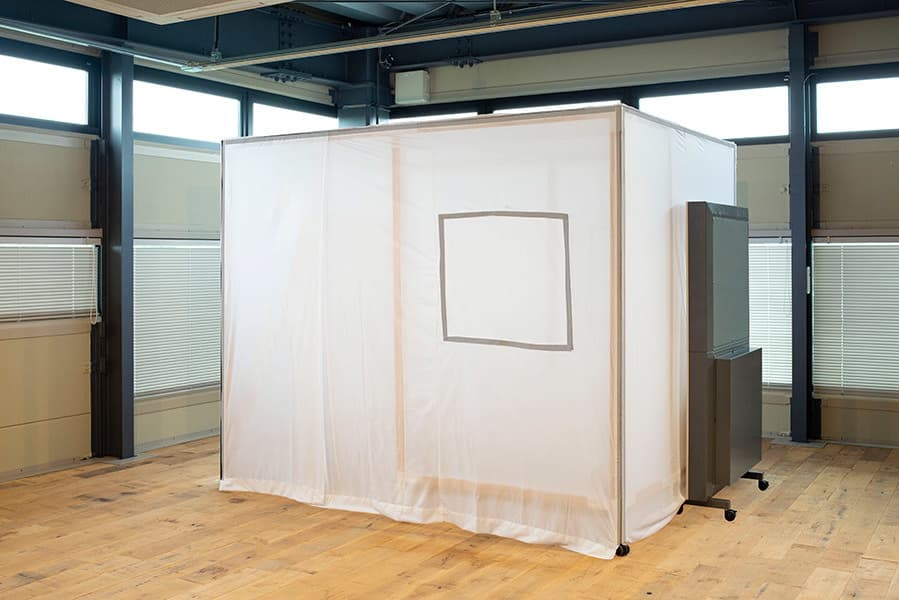 HEPAフィルター付きパーテーション “Aer”と組立式ブースの組み合わせで、医療機関や介護施設などに局所的に陰圧環境を構築