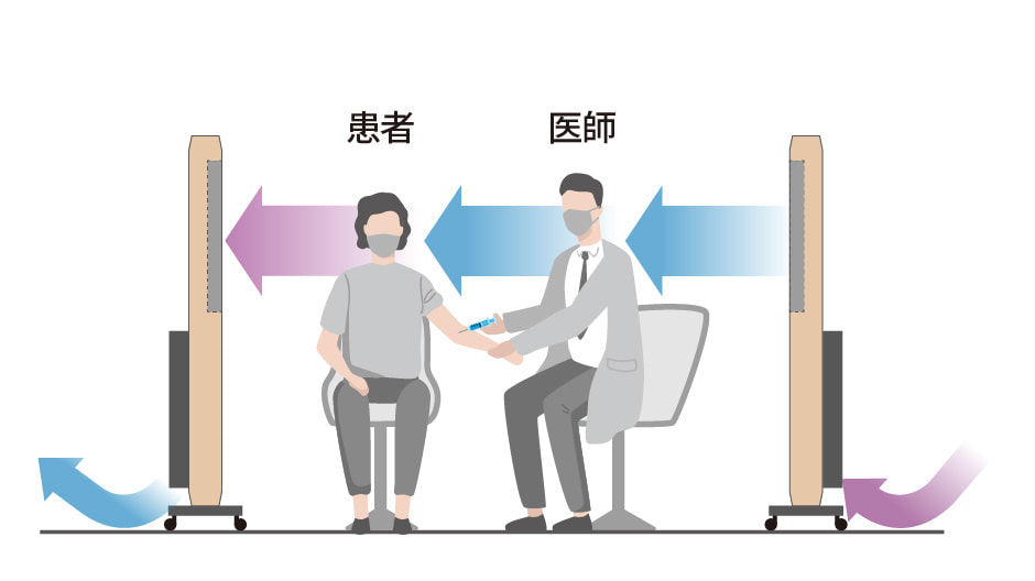 | 空気の流れをコントロールして飛沫拡散防止 |