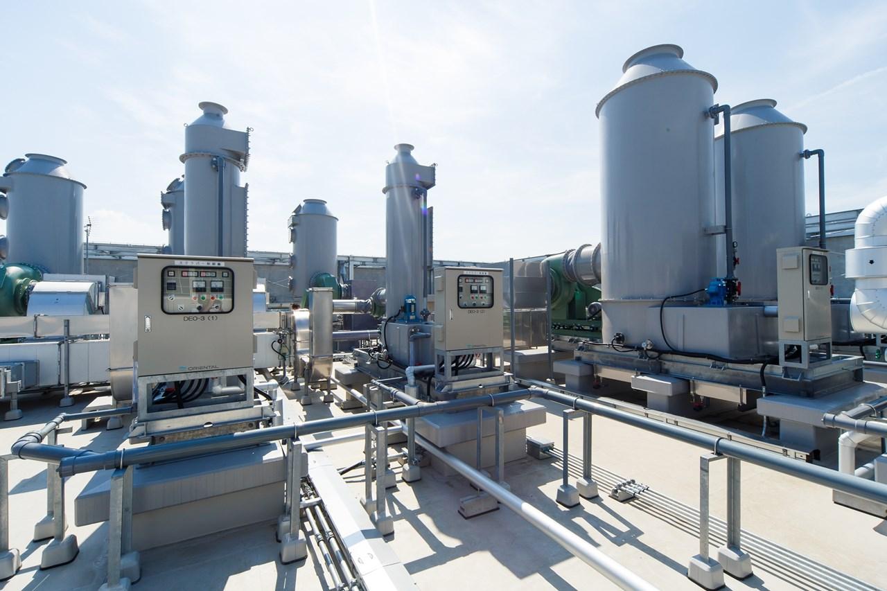 研究開発の過程でどうしても生じてしまう有害ガスは、「有害」と一言で言っても、その種類と危険性は多岐にわたります。研究所の設計に特化したプラナスとともに、お客様ごとに綿密なヒアリングを重ねることで想定されるガスの種類と量を確実に把握。空調設計の状況も鑑みて、エリア毎に最適なスクラバーを選定して設置しました。