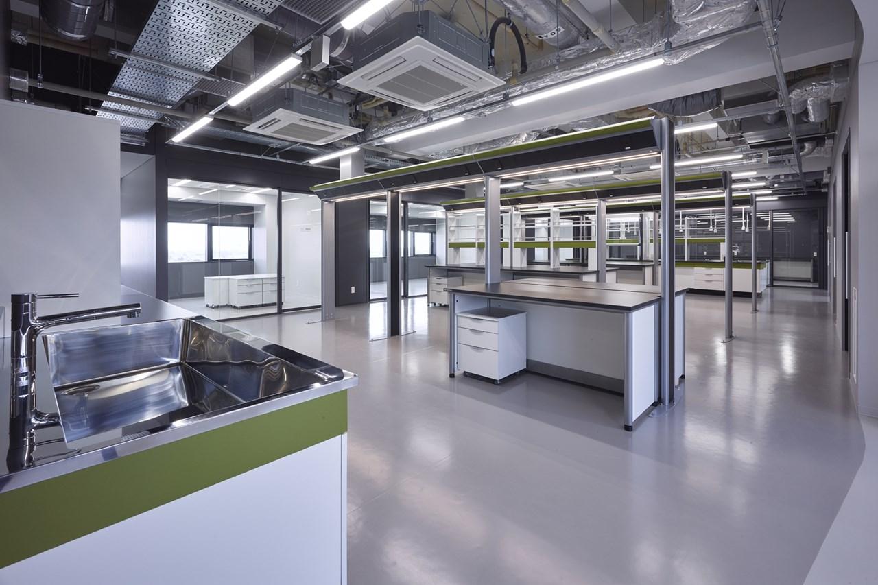 フロアごとに、実験設備に用いるイメージカラーを割り当てることで、今どこのフロアにいるのかが視覚的に認識できるようになりました。フロアやエリアを色で分けることは、研究者に無意識的にエリアの区分を理解させ、動線を誘導することに役立つほか、色の刺激が研究者にインスピレーションを与えます。