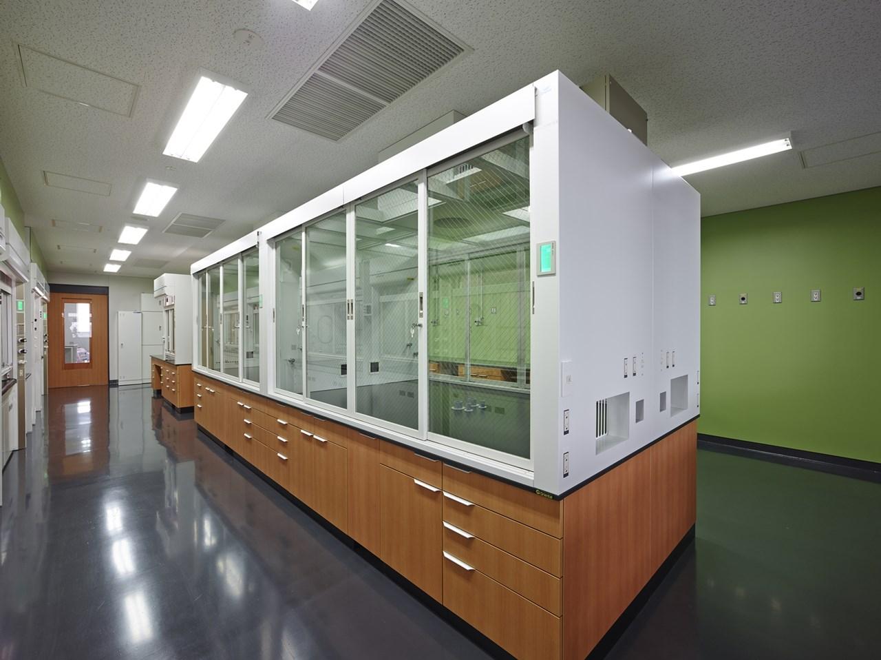 化学実験の作業ベースとなるヒュームフード。