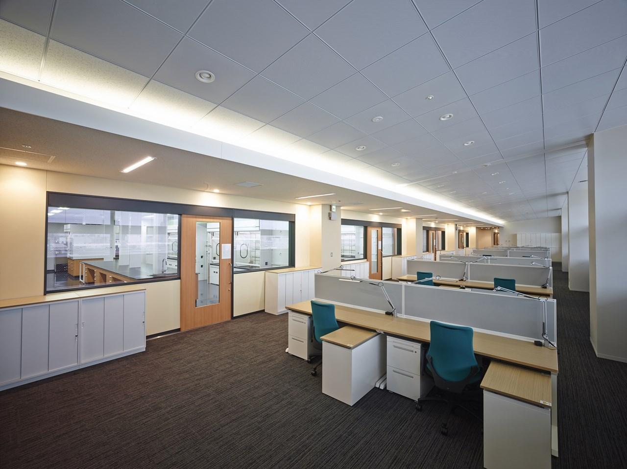 創薬の初期探索から製造までの一貫した製薬研究開発を行う拠点として各地に分散していた研究拠点を集約・効率化を図るにあたり、使い勝手や安全性を確保した施設であることはもちろん、コミュニケーションを活発化し、創造的な研究環境を整備することがクライアントの課題でした。