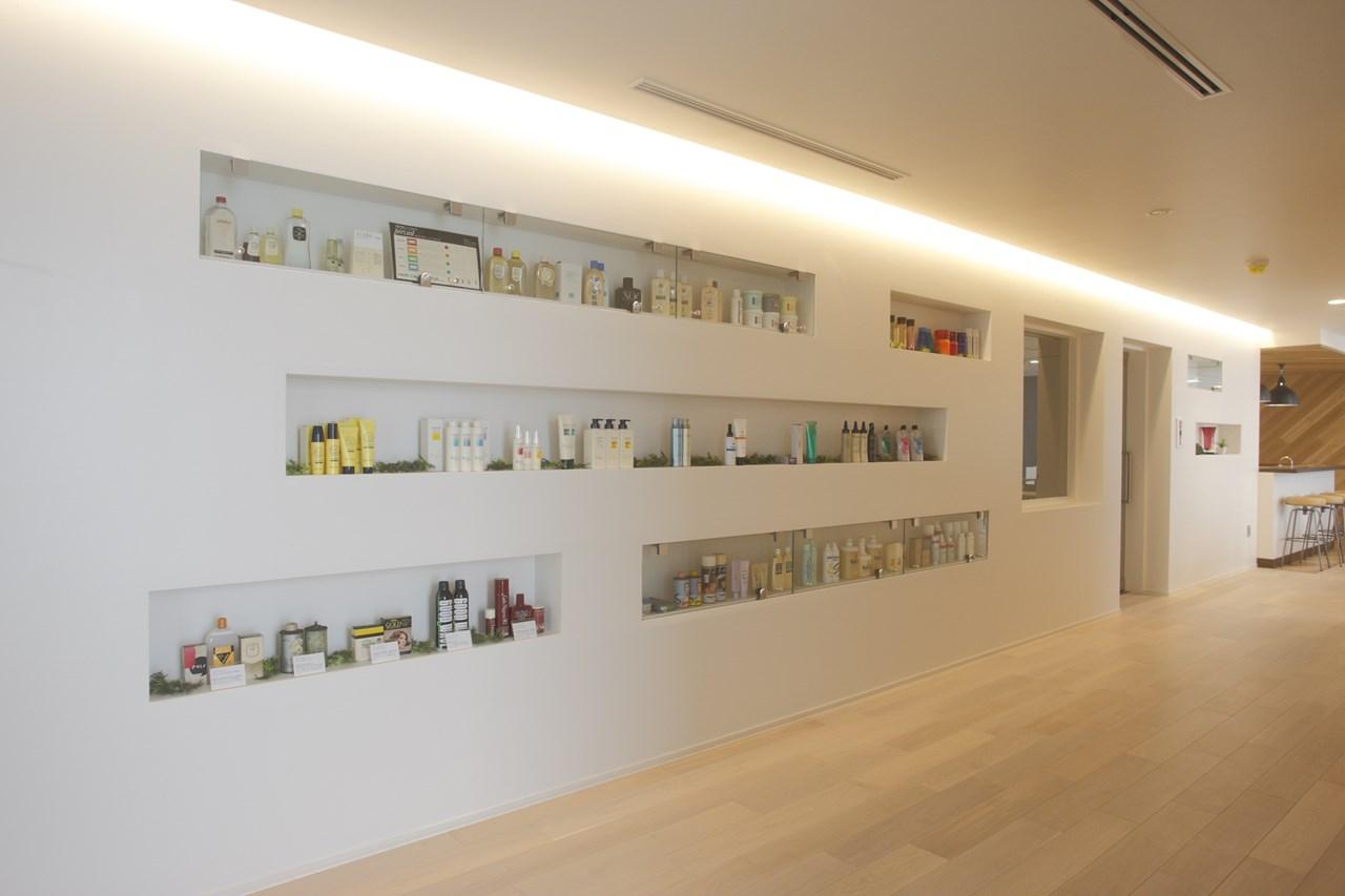 本施設には実験室・オフィスだけではなく、試作品を試すことができる美容室やコミュニケーションエリアが完備されています。プラナスの設計により、お客様との、あるいはスタッフ同士の距離を自然と近づけ、対話を活性化させるショールームとしての機能も兼ね備えています。